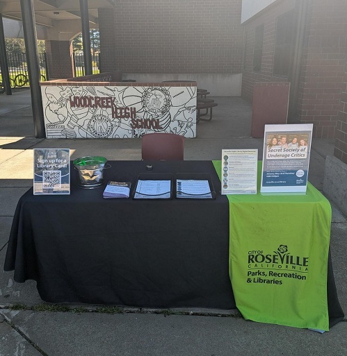 Library outreach events typically take place within city limits and are designed to provide community members with information about the library. Most outreach events involve setting up a table stocked with engaging activities and informational materials, along with a staff member or two who can answer questions and help get people connected with library resources. While the library does maintain a mobile library van, it's reserved for select occasions and is not usually brought to standard outreach events.