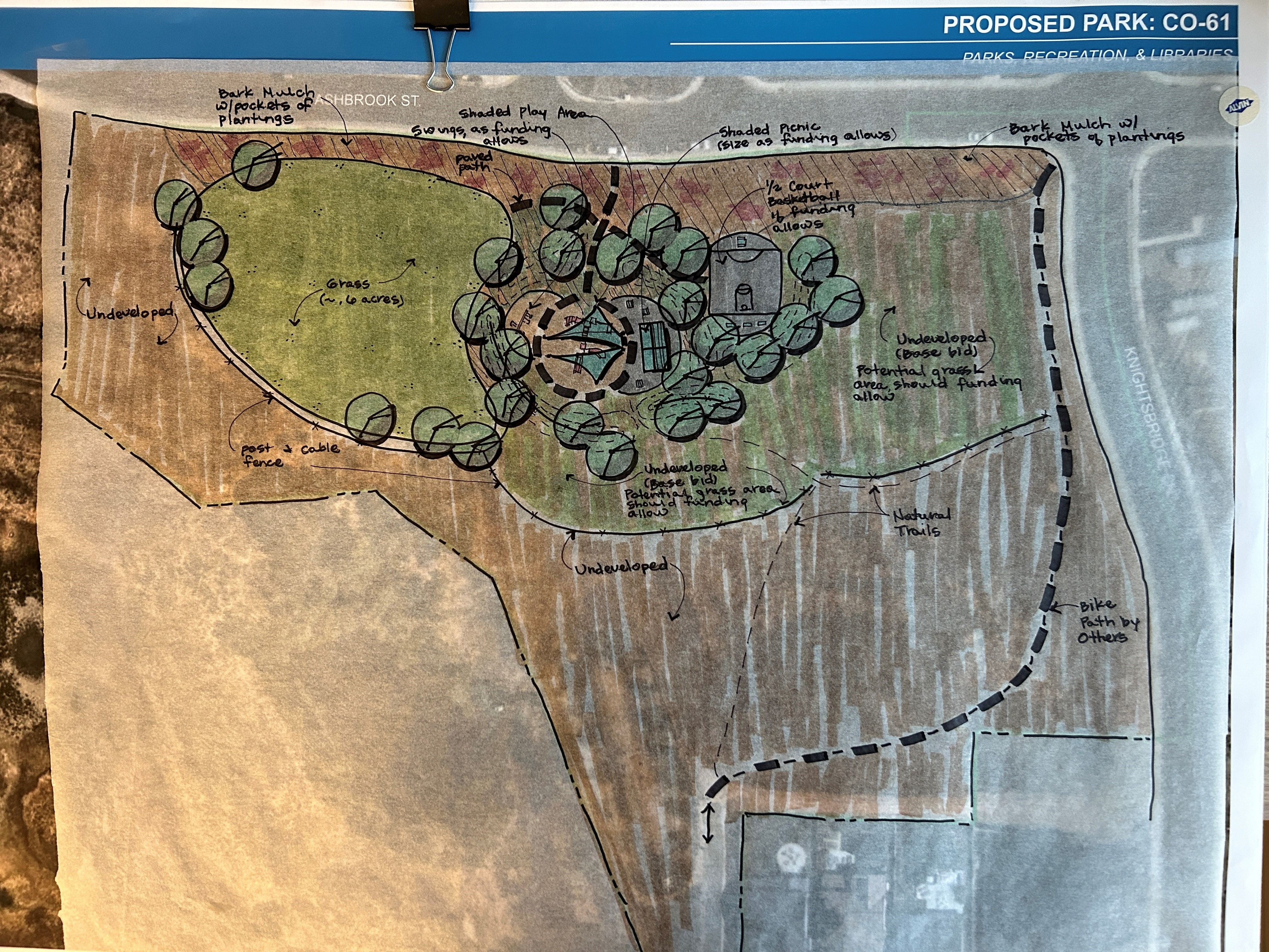 The revised master plan was approved by Council in June 2025. Currently, we do not have funding to complete the park as designed. As with all city-wide parks, this park will be built in phases. The elements for a second phase have not been identified. There is no timeline for this park as yet.