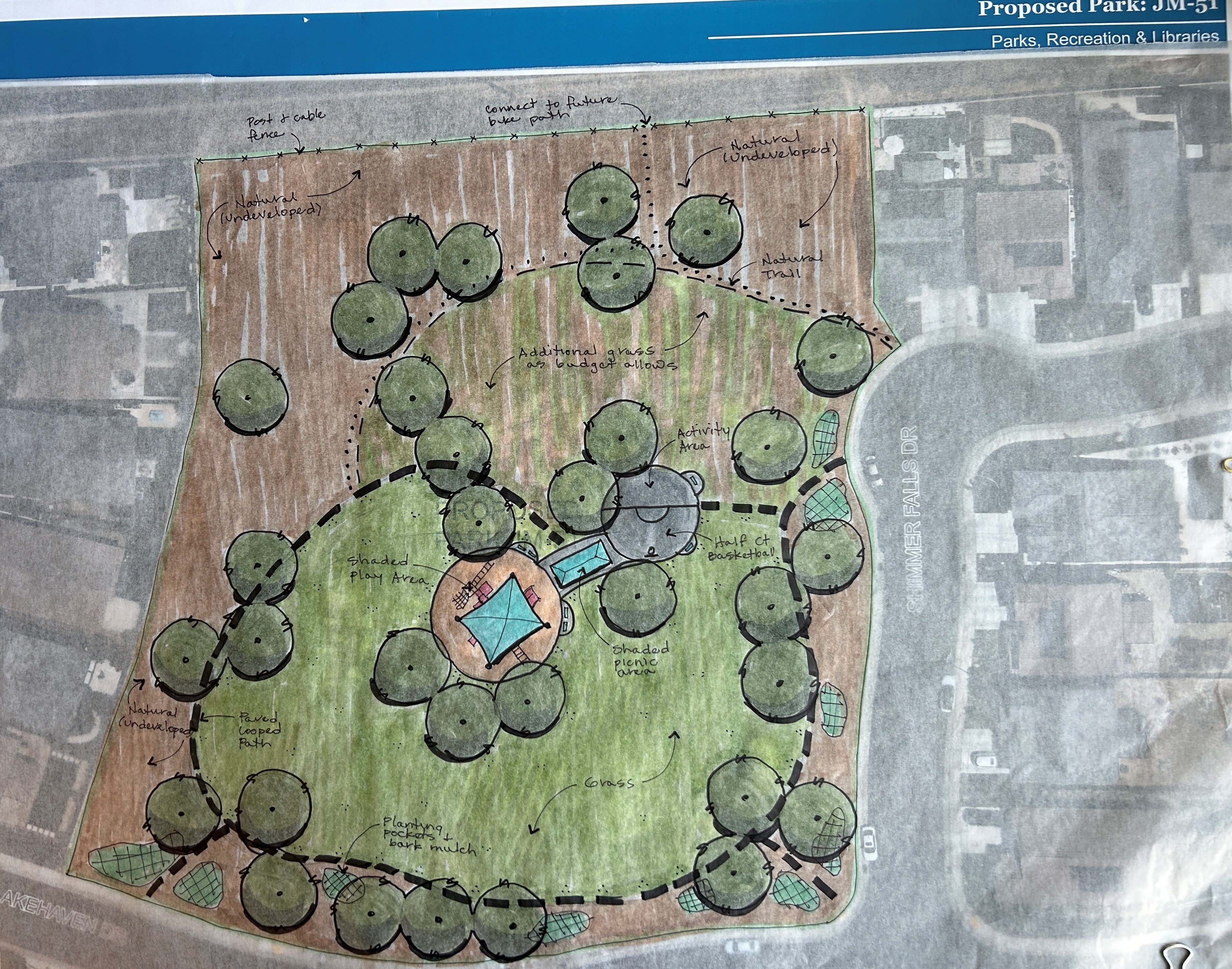 The master plan was approved by Council at the at the July 17, 2024.Construction is anticipated to begin in June 2025, with a construction timeline of about a year, weather-permitting. This includes an establishment period.