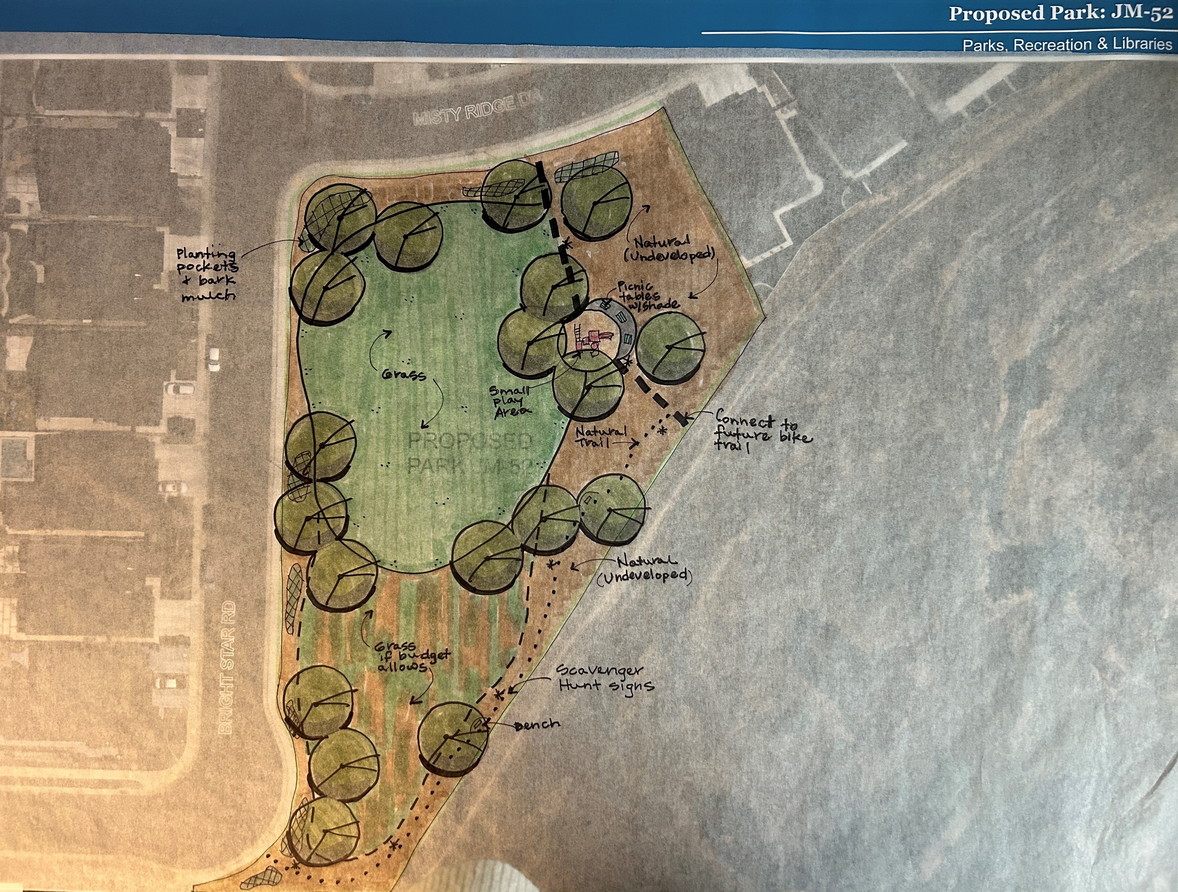 Based on comments shared at the Parks & Recreation Commission meeting on June 3, 2024, two notes have been added for further clarification regarding a potential zip line and the amount of grass to be included in the master plan. The master plan was approved by Council at the July 17, 2024, meeting.