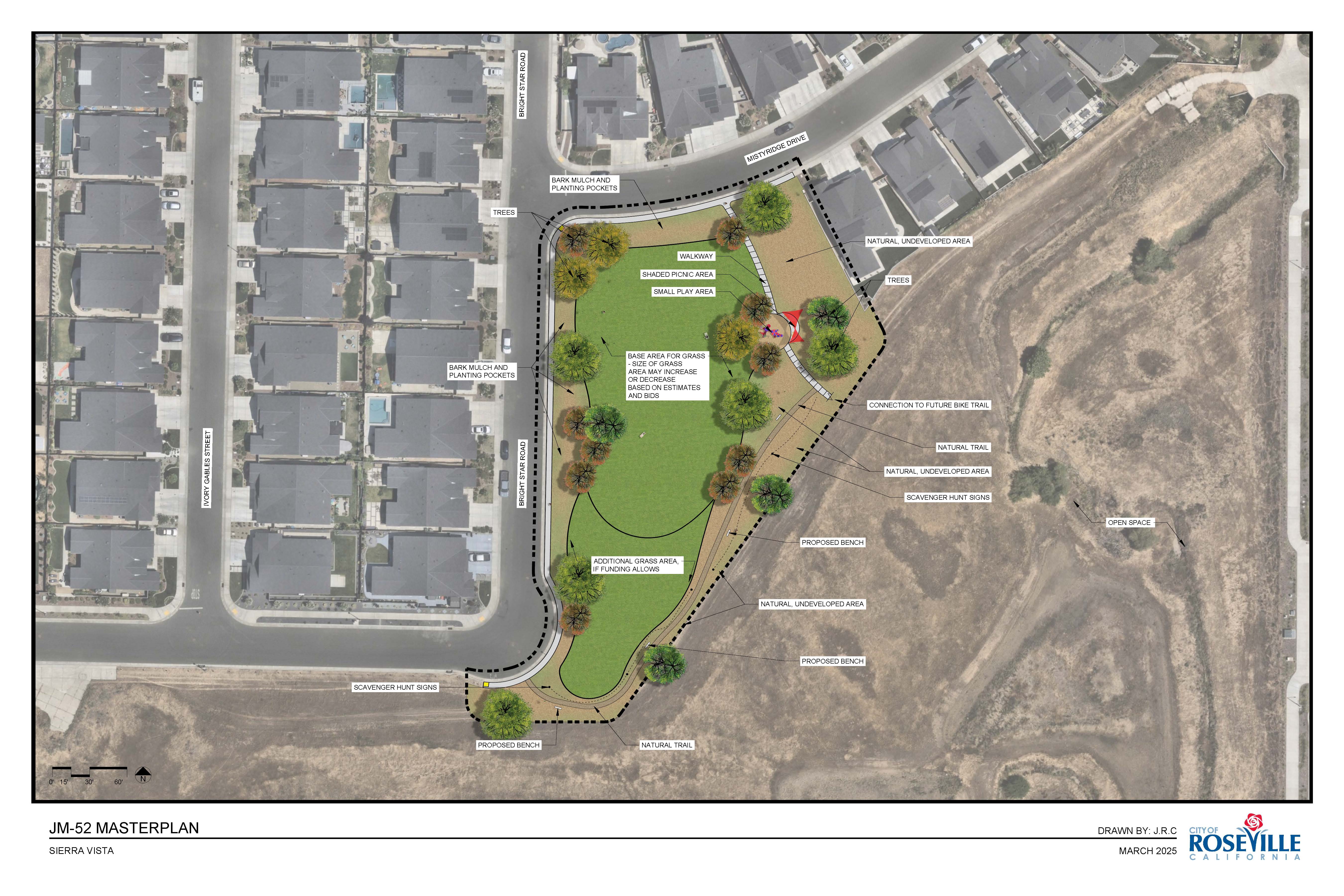 Thanks to all for your input during the two public workshops held in late 2023. Based on your feedback, a master plan has been developed. The two-week write-in period was open prior to April 4, 2024. Please share your support for the plan (see below) and/or any additional comments with us at parksintheworks@roseville.ca.gov
