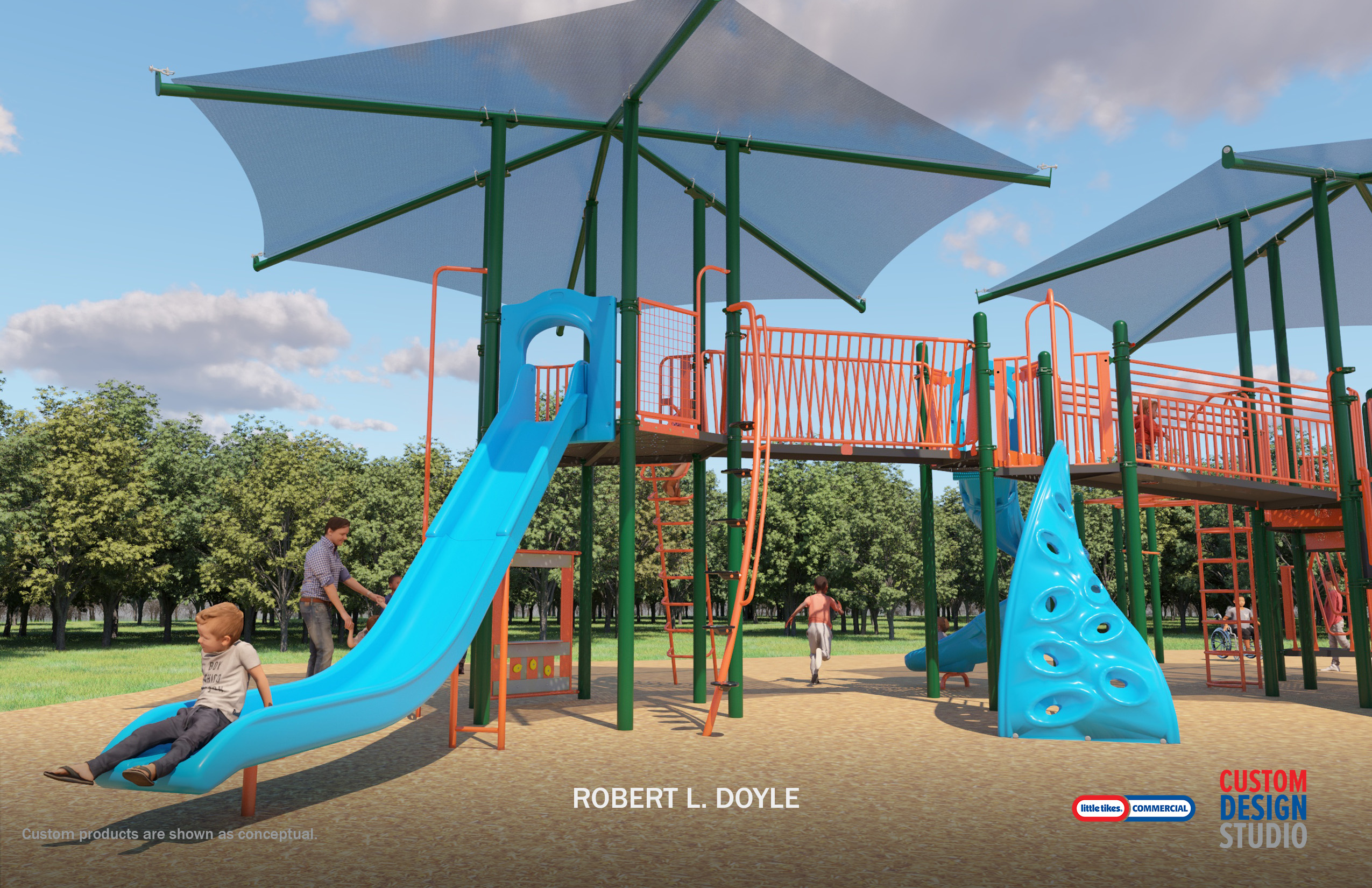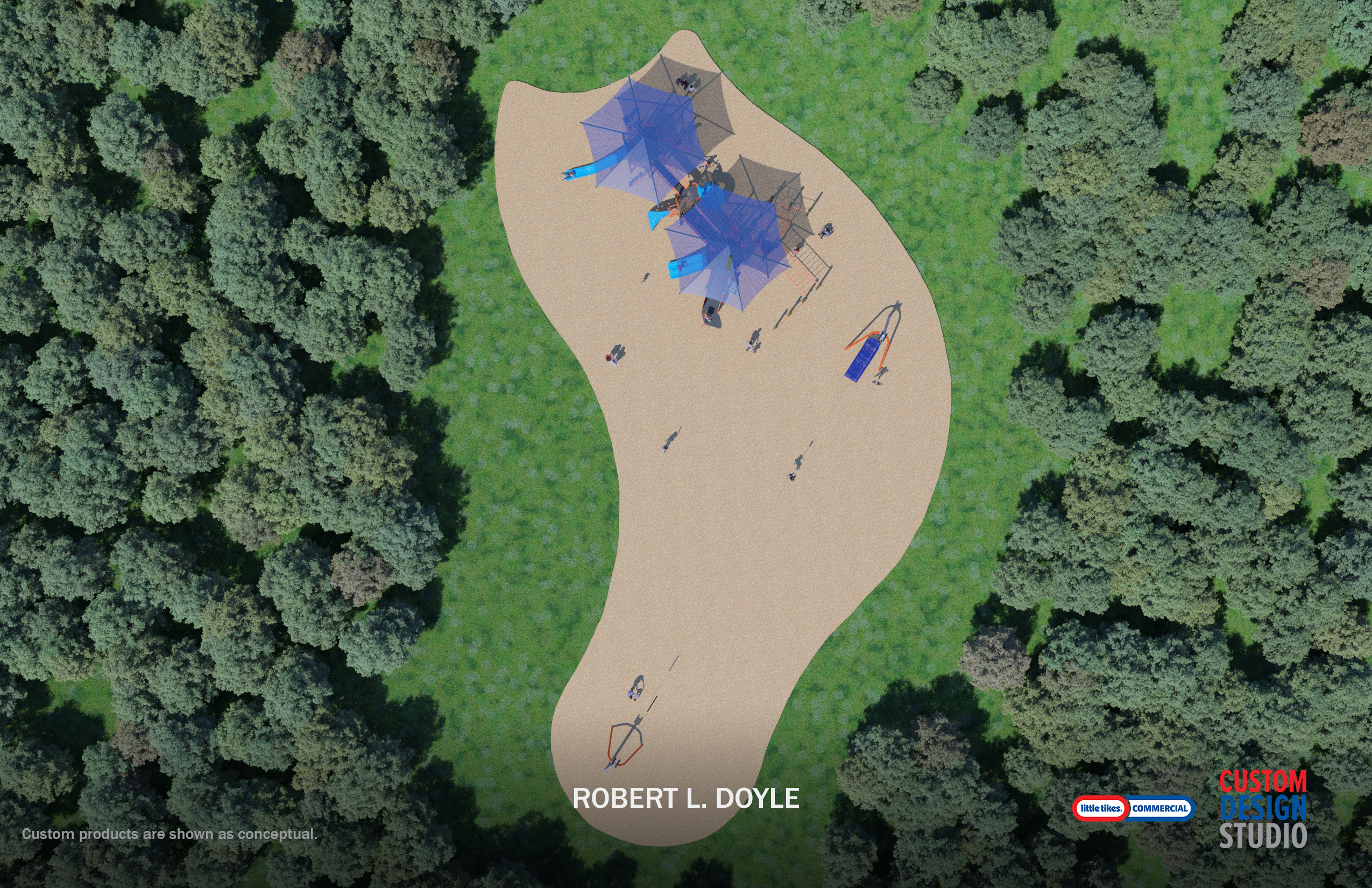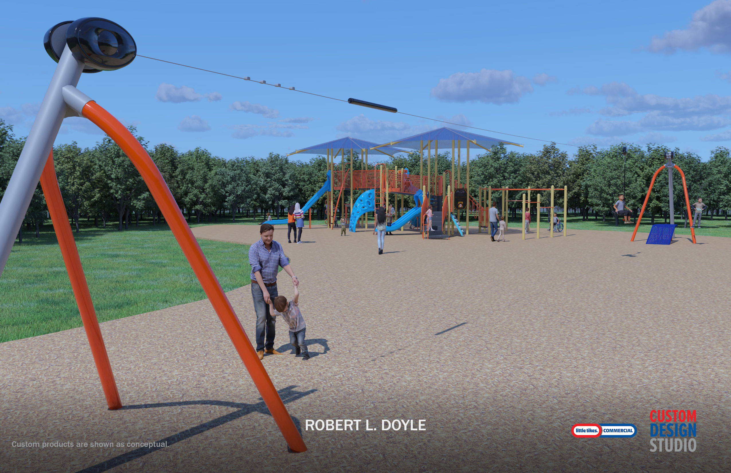 An initial virtual public workshop was held on May 24, 2022 to share an concept design for the universally accessible playground to be located at the north end of the sports complex.