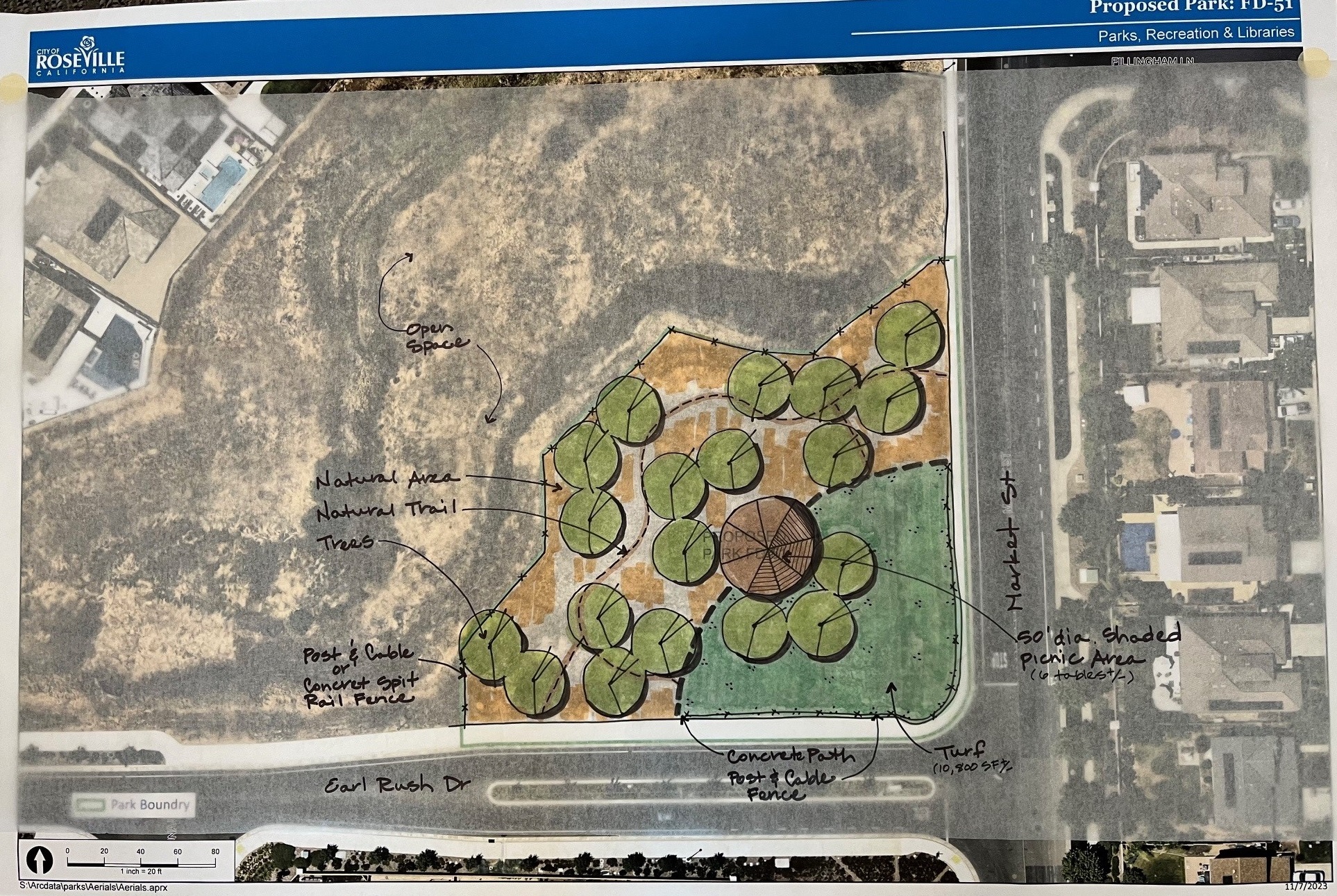 This is a 7.5-acre park site in the Sierra Vista area in Roseville, that is adjacent to a future elementary school.